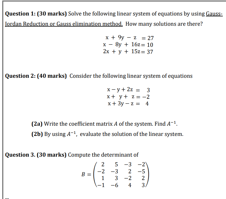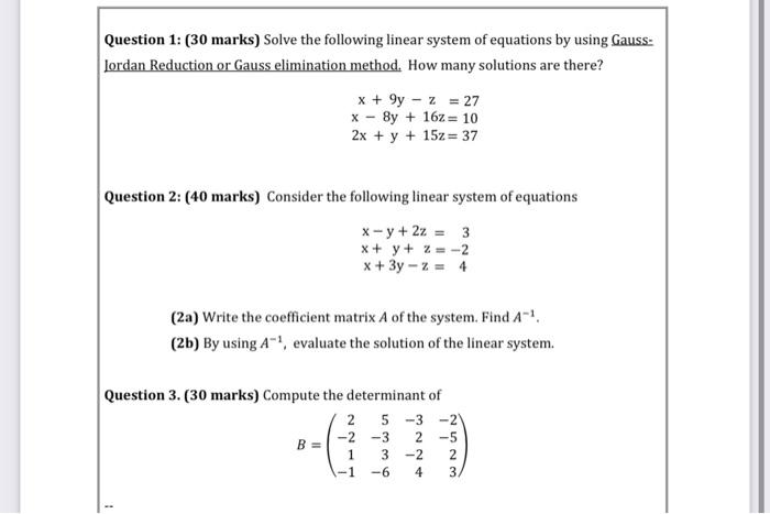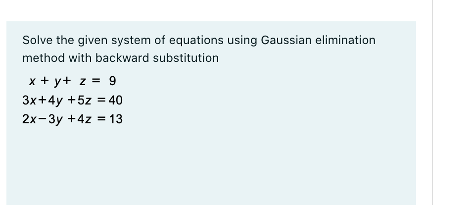 Solve The Following System Of Equations Using Gaussian Elimination Method. 40